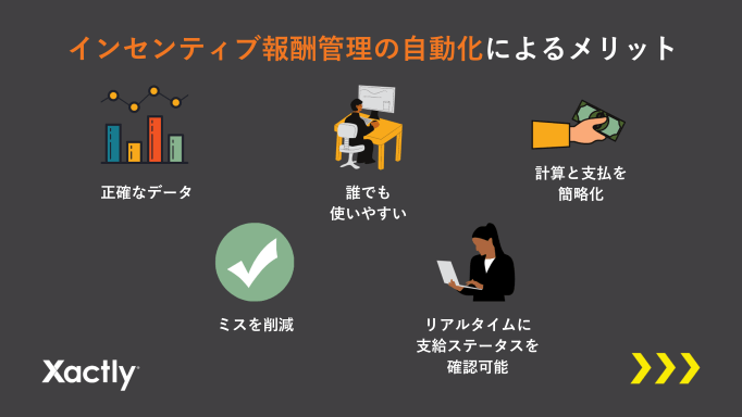 インセンティブ報酬管理(ICM)ソリューション があれば、報酬に関する正確なデータが、組織内のすべての人がアクセスできる一元的な場所に格納できます。また、報酬計算と支払プロセスが簡略化され、ミスが減ることに加え、営業担当者は獲得した報酬をリアルタイムに確認できるようになります。