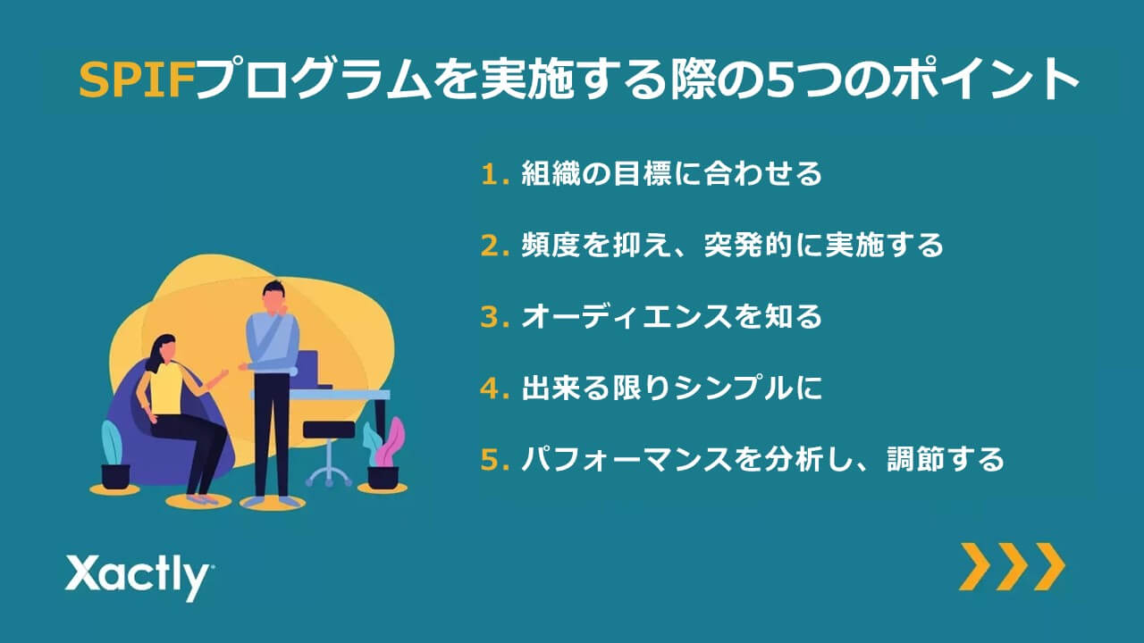 インセンティブ報酬制度に加えてSPIFプログラムを実施する際は、以下の5つの点に留意してください。
