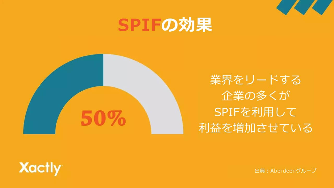 すでに包括的なインセンティブ報酬制度が定められているにもかかわらず、なぜ短期間限定のインセンティブを用いる必要があるのでしょうか。それはもちろん、時として効果的に働くからです。Aberdeen社の調査によると、業界をリードする企業の50%以上が、SPIFを利用して収益や利益を増加させています。