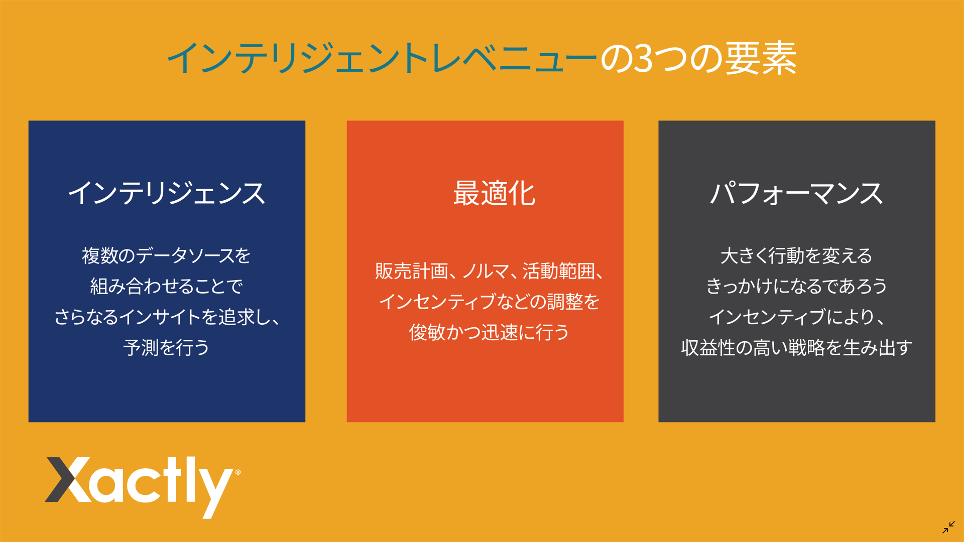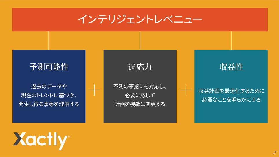 Xactlyのチーフ・レベニュー・オフィサーであるジェイミー・アンダーソンは、インテリジェント レベニューについて以下のように説明しています。