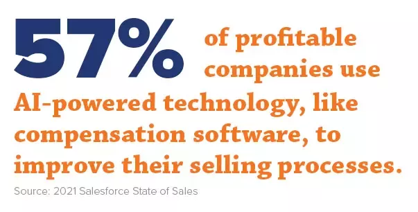 収益性の高い企業の 57% が、販売プロセスを改善するためにインセンティブ管理ソフトウェアなどの AI を活用したテクノロジーを使用しています。