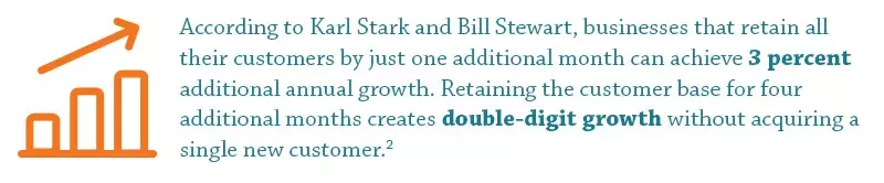 カール・スターク氏とビル・スチュワート氏によると、すべての顧客をたった1か月長く維持するだけで、企業は年間成長率を3%上乗せできるといいます。