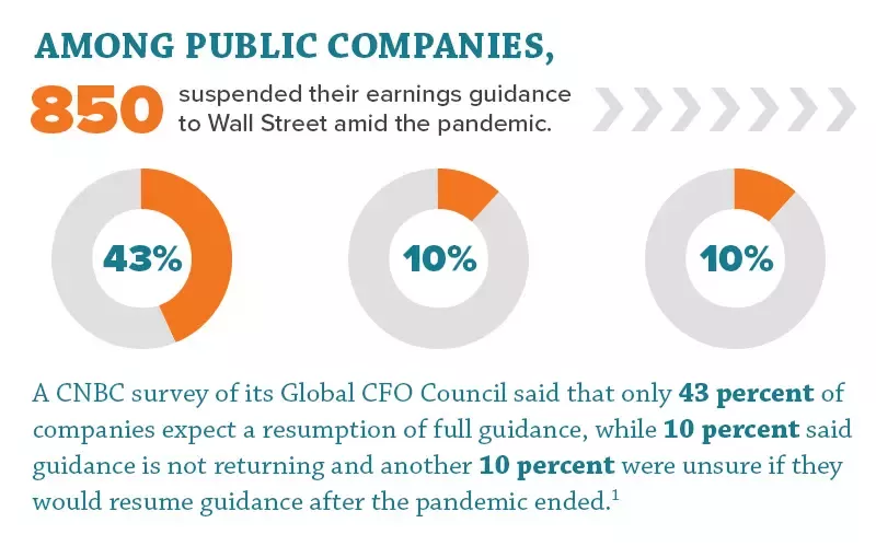 CNBCが実施したグローバルCFO評議会(Global CFO Council)への調査によると、企業のうち完全な業績見通しの提示を再開すると予想しているのはわずか43%にとどまりました。