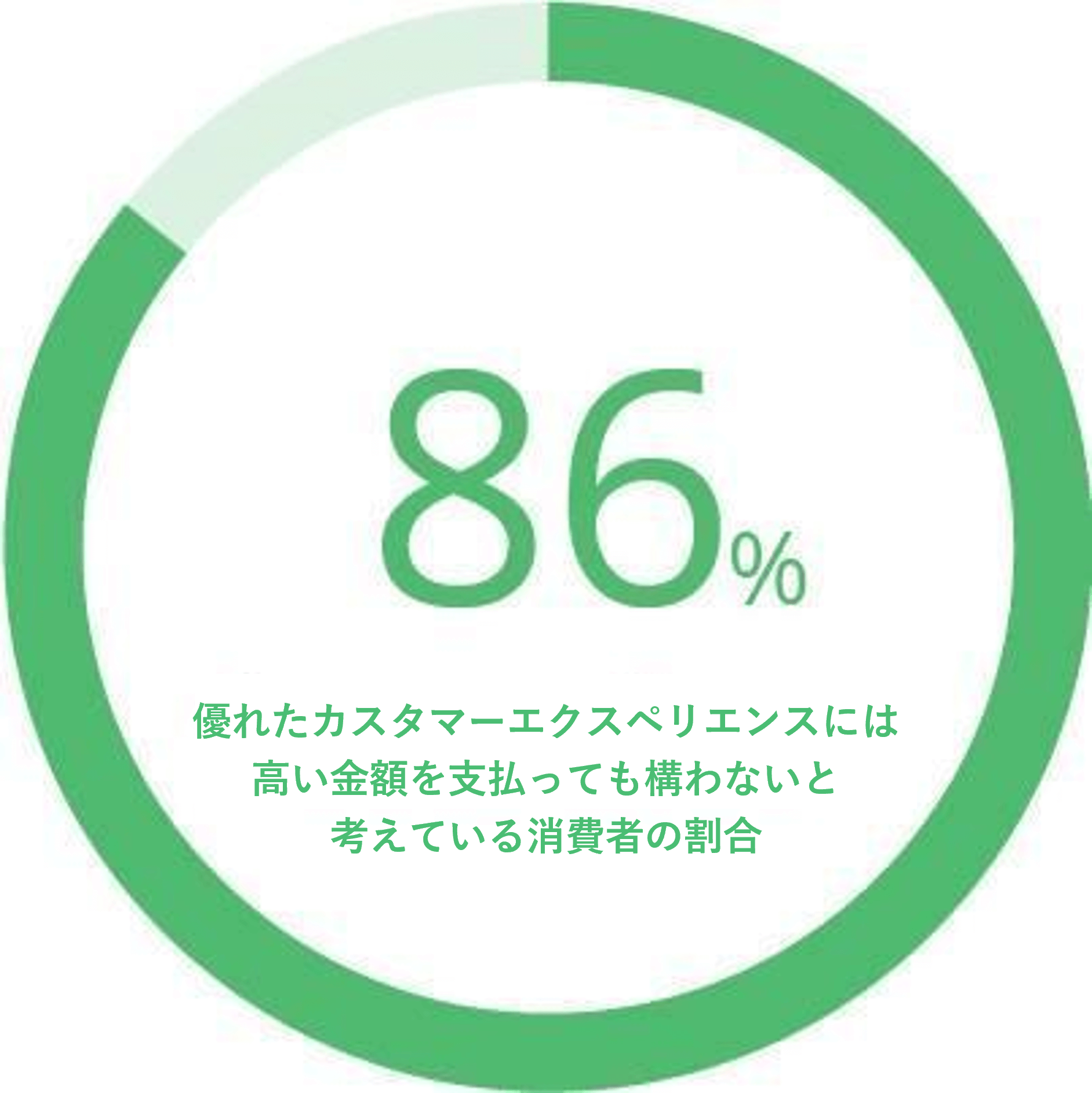企業にとってカスタマーエクスペリエンスが重要になっています。昨今のお客様は、シームレスで、パーソナライズされた、ポジティブなブランドエクスペリエンスを期待しています。多くのお客様が、価格や商品よりも、カスタマーエクスペリエンスを重視しているのです。最近の調査から、86%の消費者が、より良い体験を得るためには、高い金額を支払っても構わないと考えていることが分かっています。