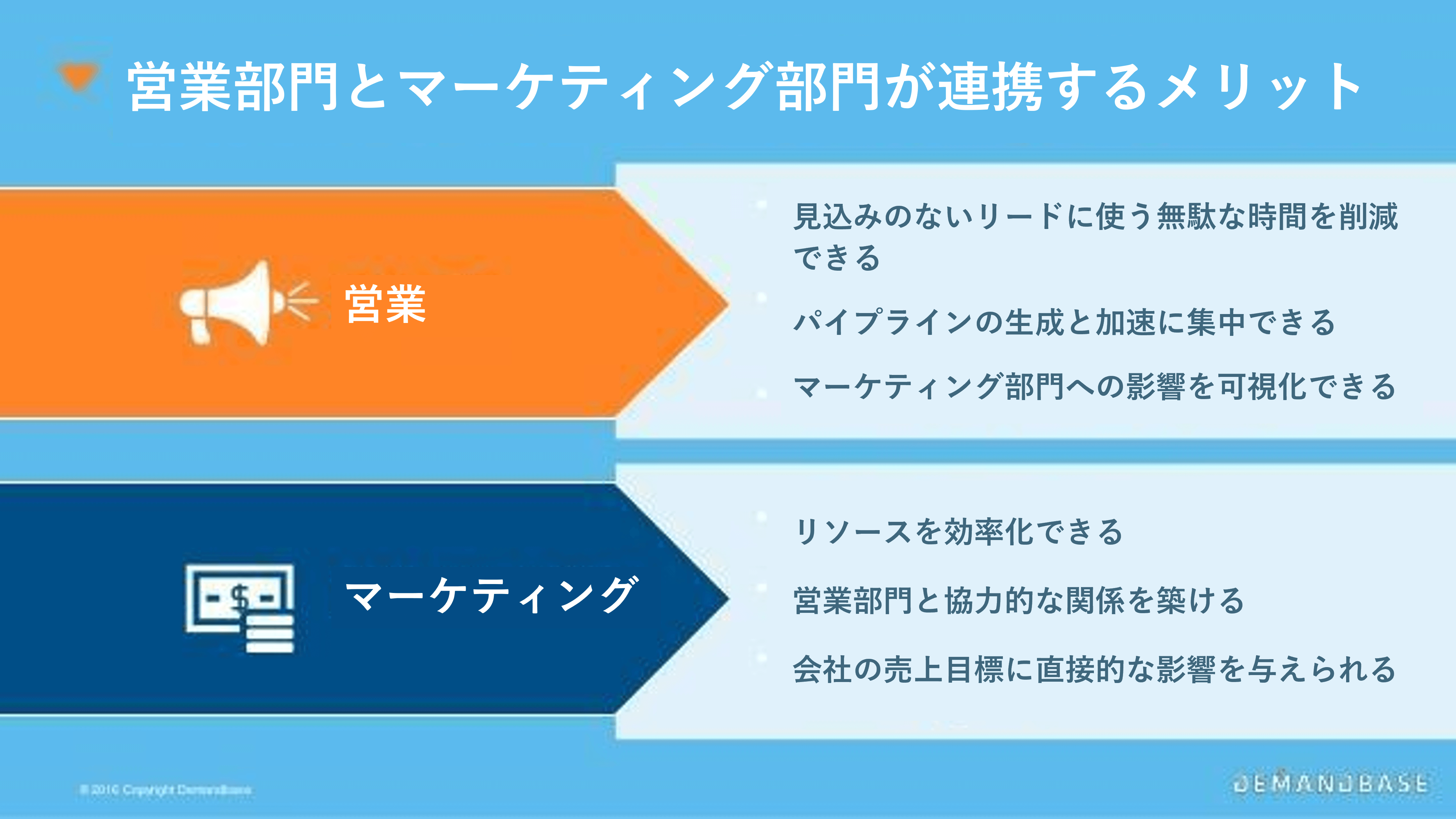 組織間の連携はビジネス成功の鍵であり、企業の売上増加を促す要因です。よくあるのは、マーケティング部門と営業部門の連携が挙げられます。それぞれは最善の努力を尽くしているにもかかわらず、連携が課題となっている企業は少なくありません。この2つの部門をうまく連携させることには様々なメリットがありますが、多くの組織では断片的な連携にとどまっています。