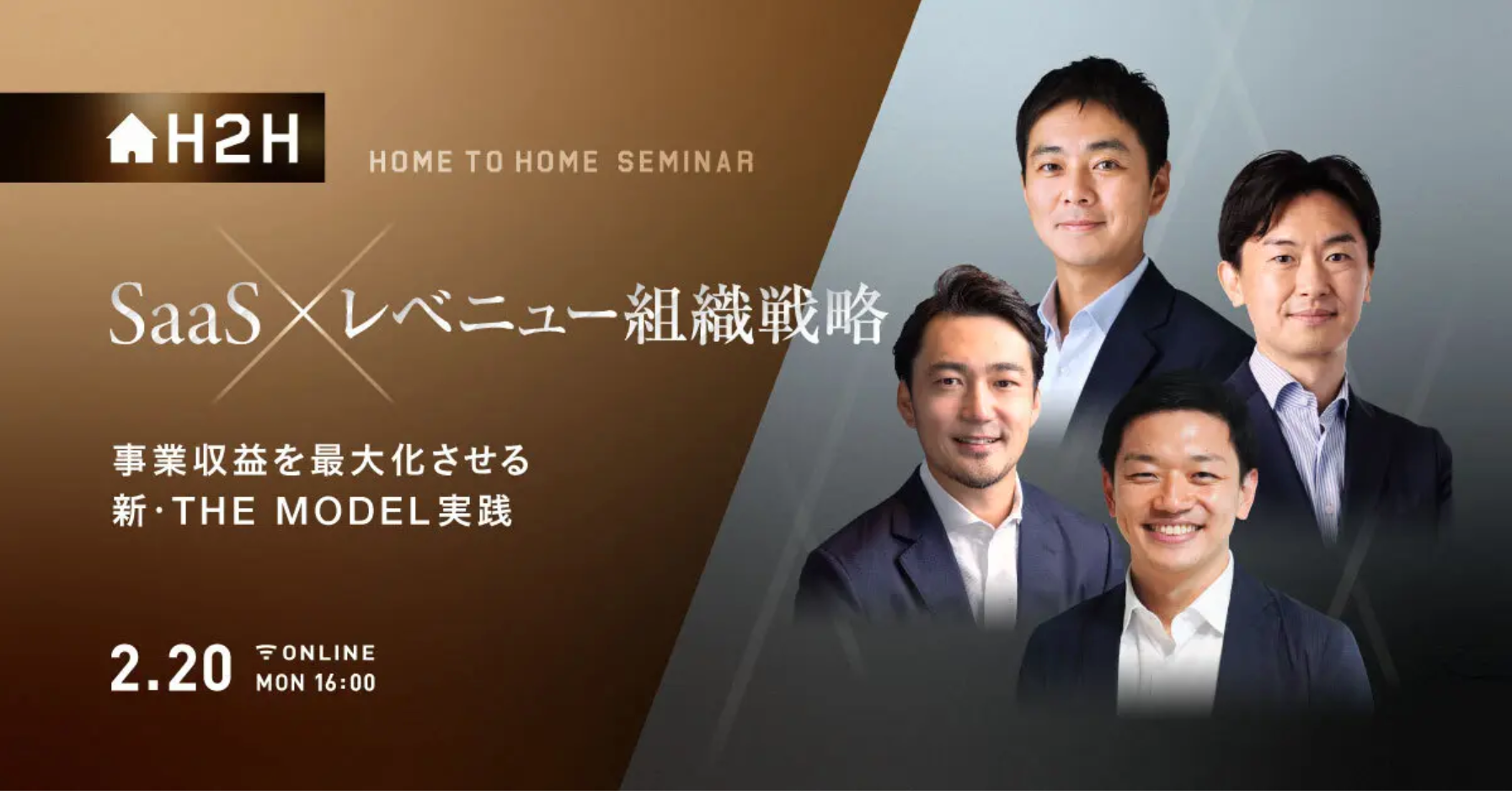 これからのTHE MODEL型組織に求められる「レベニュー組織マネジメント」ついて、THE MODEL著者 福田 康隆氏をモデレーターとして、Gainsight 日本法人代表 絹村 悠 氏、ユーザベース FORCAS事業 CEOの田口 槙吾氏、弊社代表の福眞がパネリストにて、議論を展開していきます。