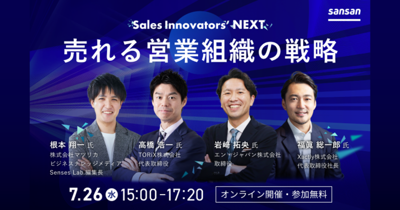 Sansan社主催 「Sales Innovators' NEXT 売れる営業組織の戦略」にて、弊社が講演いたします。