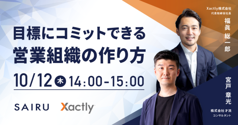 そこで本セミナーでは、「営業成果を最大化する営業組織の作り方」について徹底解説します。「営業」のパフォーマンスを最大化するためのフォーキャスト管理方法をXactlyが、行動の型化とその定着方法を才流が語ります。