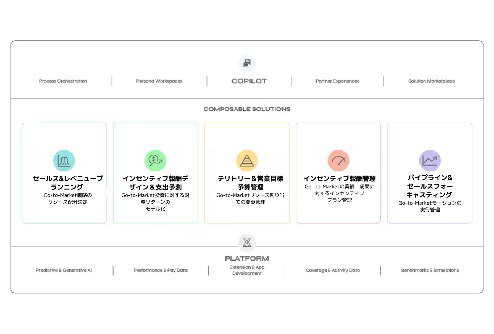 Xactlyのインテリジェントレベニュープラットフォームでは、Go-to-Marketチームの壁を解消することで、パフォーマンスが加速し、レベニューパフォーマンスが解き放たれます。それにより、予測性・収益性・レジリエンスに富んだレベニューが実現します。