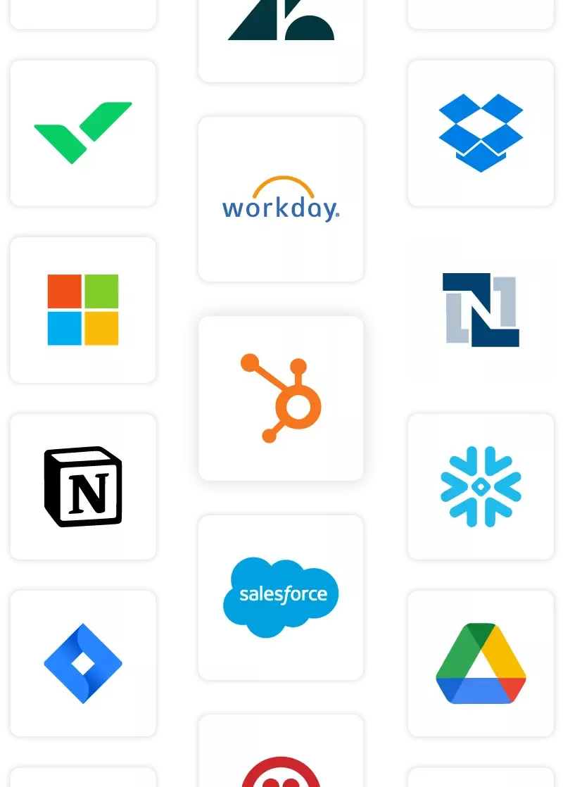 Salesforce、Microsoft、Workday、Hubspotなど、あらゆるCRM、ERP、HRISとの統合が可能です。常に互換性やコネクタを最新状態に保つことで、クラウド上でのシームレスな運用を常に可能にします。