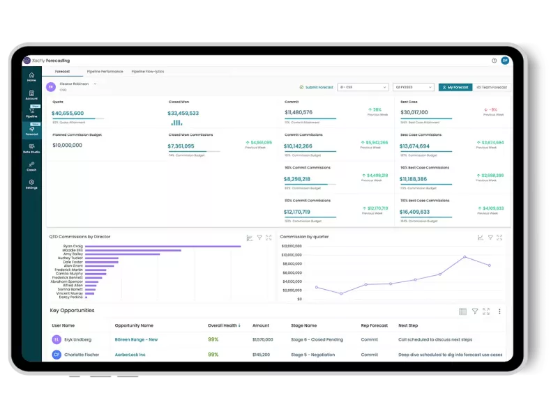 強力なインサイトにより、パイプラインの全商談の健全性を把握できるようになります。ガイド付きの営業アラートを最適化することで、さらなる商談成立を達成するための効果的な営業行動を促進します。すべてを報酬プランと整合させることで、よりきめ細かい包括的な営業計画プロセスを実現できます。