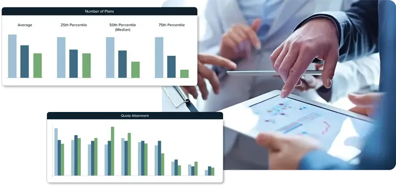 Xactly Designは、およそ20年にわたる独自の報酬およびパフォーマンスデータに基づいたインサイトとベンチマークを提供し、インセンティブ報酬プランの設計プロセスにおける意思決定をサポートします。市場トレンドを見極め、過去の意思決定による影響を評価し、今後の変更による影響をシュミレーションします。
