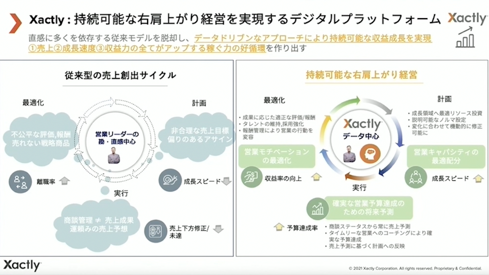 Xactlyは不確実な市場環境においても計画、実行、最適化のサイクルで企業の『稼ぐ力』を長期的に高めていくSaaSプラットフォームです。