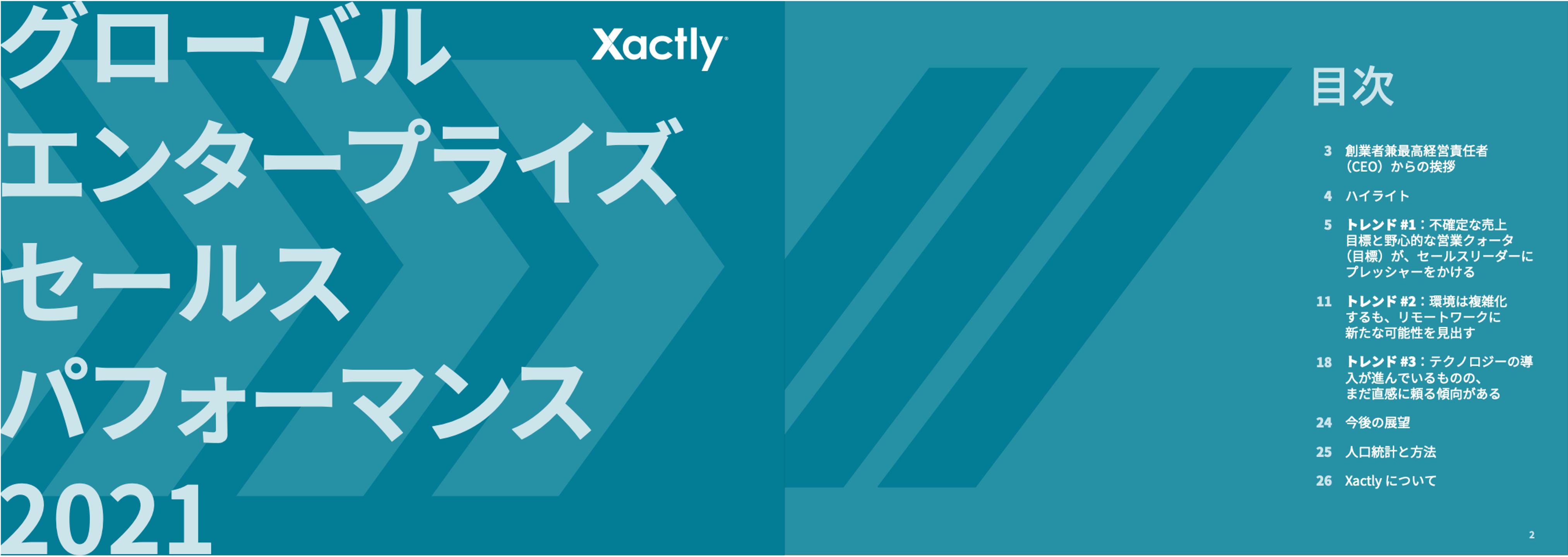 Xactlyは、大規模組織の営業・営業管理部門のリーダーが、絶え間ない混乱の中、どのようにデジタル トランスフォーメーションを進めてきたかを把握するために、2021年2月に、米国、カナダ、ドイツ、 フランス、英国の企業の営業意思決定者を対象に調査を実施しました。本調査を通じて、企業の成長のための重要な領域が明らかになっています。