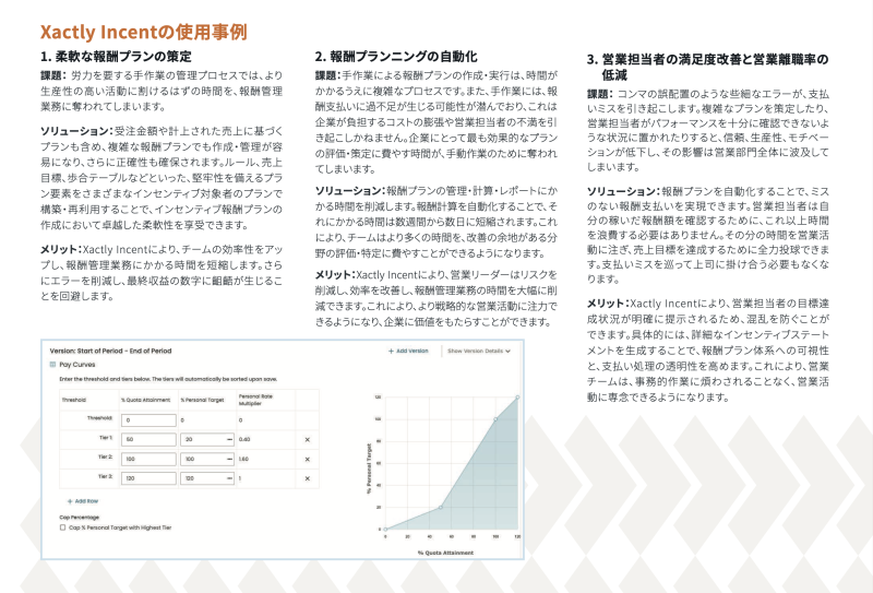 インセンティブ報酬管理ソリューション Xactly Incentは以下の点で営業組織を支援します。