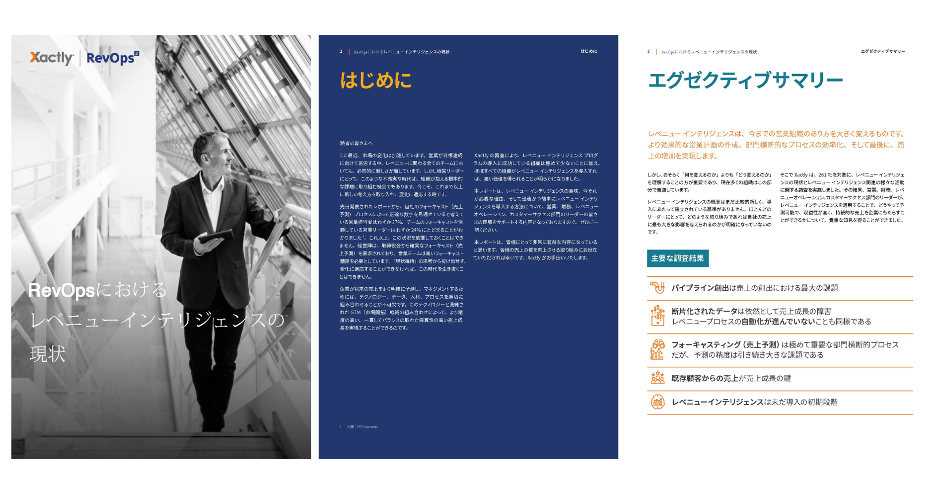 これは、250人以上の世界的な経営リーダーを対象としたXactlyの最新調査レポート「レベニューインテリジェンスの現状」から得られた調査結果のほんの一部です。この調査結果は、レベニューインテリジェンスに関する重要なベンチマークとなるだけでなく、経済が不確実なこの時代に、企業が進むべき明確な道筋を示しています。