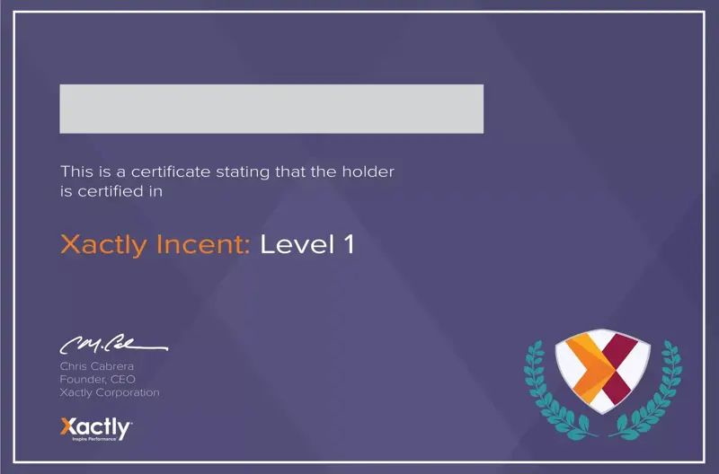 Xactly Universityの多くのコースには、関連した認定資格があります。認定資格取得者には、認定証明書を発行し、オフィスにお送りします。認定資格をLinkedInのプロフィールに登録するのをお忘れなく。