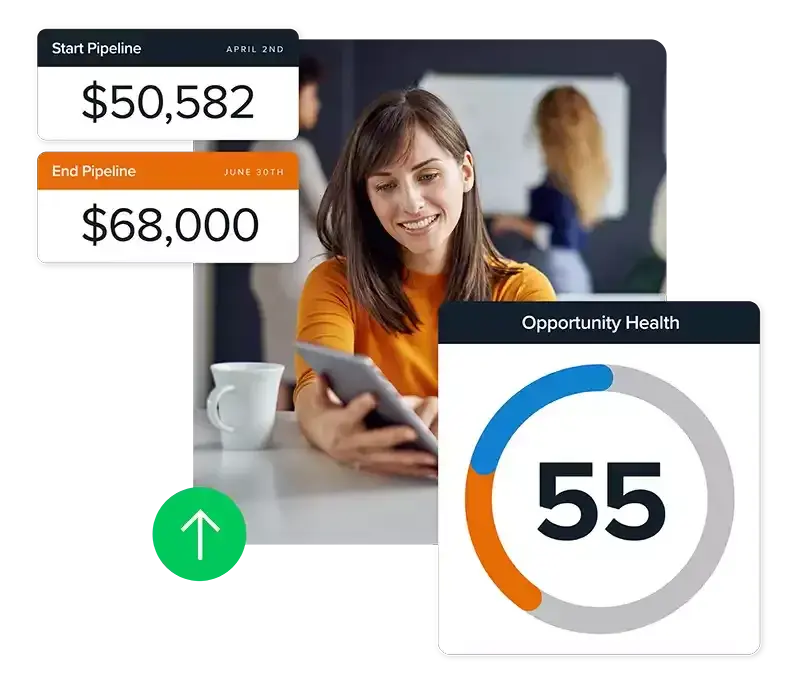 - 受賞歴のあるAI技術を活用したアカウントおよび商談の健全性スコアにより、営業活動やエンゲージメントの改善をサポートします。